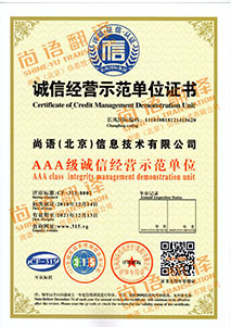 尚語翻譯是AAA級誠信經營示范單位